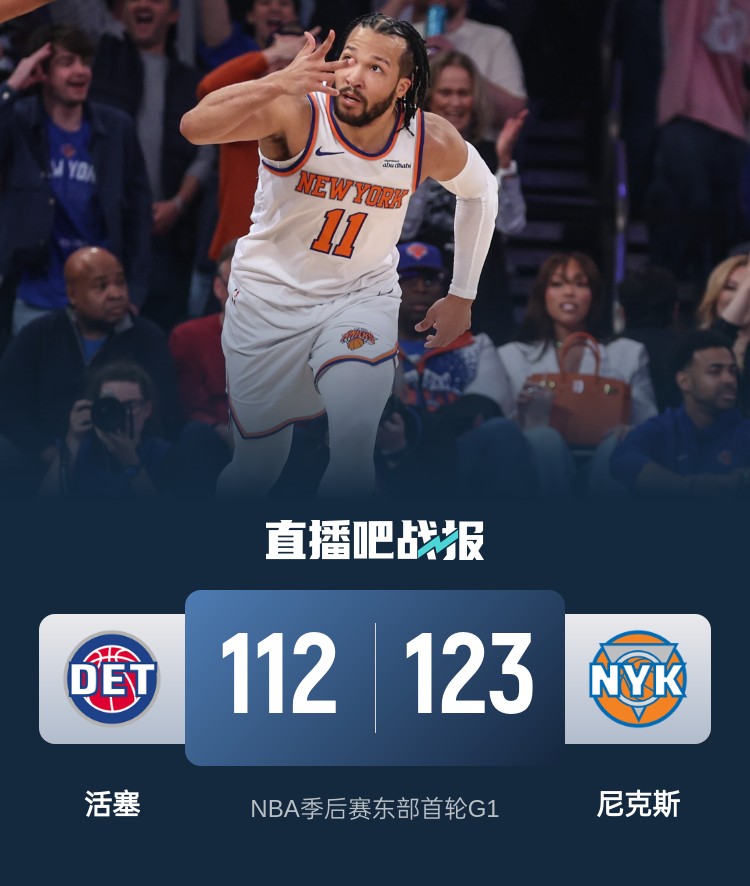 首节对决活塞开局稍显拘谨前4分半钟的时间里仅拿到3分,尼克斯则更加主动以10-3开局抢占先机;不过后半段活塞明显适应过来迅速追上比分;次节双方开启对攻模式,活塞在这一节的对决中不落下风甚至多次实现反超,不过节末尼克斯依靠阿努诺比连拿5分的表现顶住压力并带着2分领先进入下半场。休息归来活塞迎来新一轮反扑,开局不久他们便送上一波15-6的攻势实现反超,末段又送一波7-0的小高潮成功拉开比分。但末节尼克斯迅速调整回来,佩恩成为奇兵命中两记三分和一记2+1独得11分,尼克斯抓追对手哑火的机会轰出21-0的攻势直接反超取得两位数领先。末段活塞虽然回暖追分但为时已晚。最终,尼克斯逆转活塞迎来系列赛开门红。