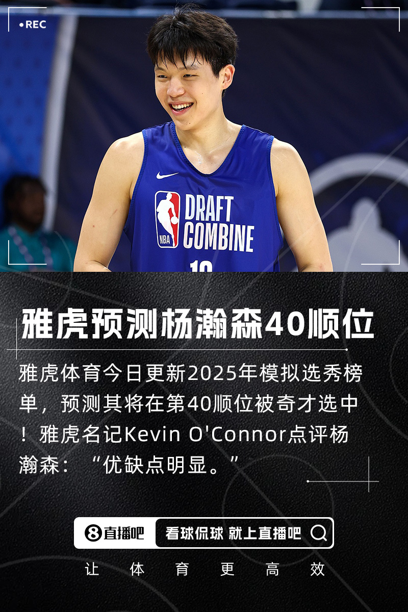 05月20日讯 雅虎体育记者Kevin O'Connor更新了2025年NBA模拟选秀榜单,中国男篮新星、青岛队中锋杨瀚森第40顺位被奇才选中。