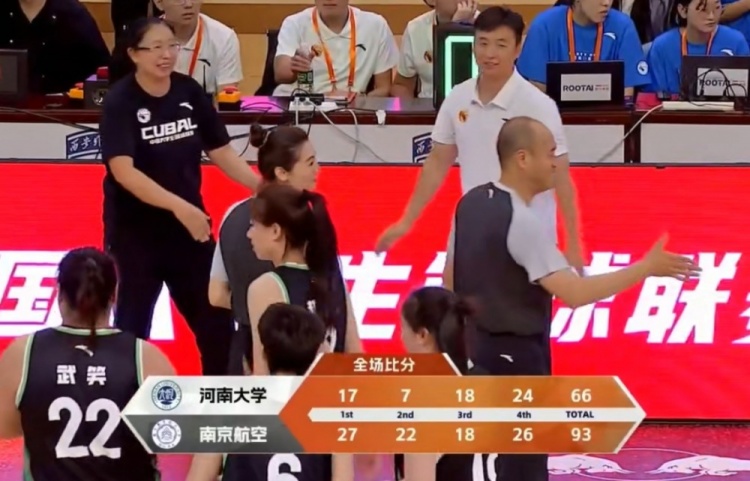 末节决战,刘思雅一攻一传助河南大学7-0追到20分以内分差,武笑抢到进攻篮板再次强攻,王佳颖外线三分还有,南京航空回应7-0稳住局势。随后王佳颖外线根本挡不住,南京航空终于拉开30分以上领先,河南大学再追分但无力回天,最终南京航空93-66大胜河南大学。