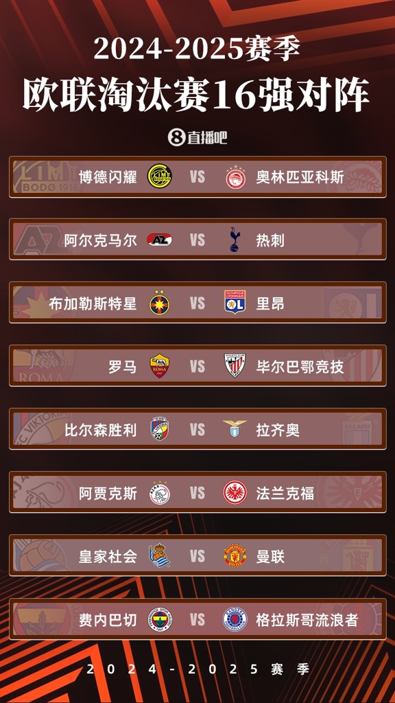 02月21日讯 北京时间今晚20点,欧联淘汰赛抽签仪式在瑞士尼翁进行,16强完整抽签结果出炉!