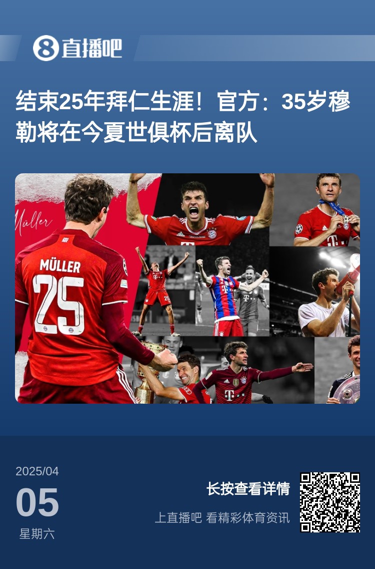 无独有偶,穆勒将在今夏世俱杯后离开拜仁。在上个月的一封公开告别信中,穆勒本人明确表示:“我本期待能在下赛季继续扮演我的角色。然而俱乐部已明确决定不与我续约。尽管这与我个人意愿相左,但尊重俱乐部坚持自身理念的选择至关重要。我理解董事会和监事会作出这个决定绝非易事。”