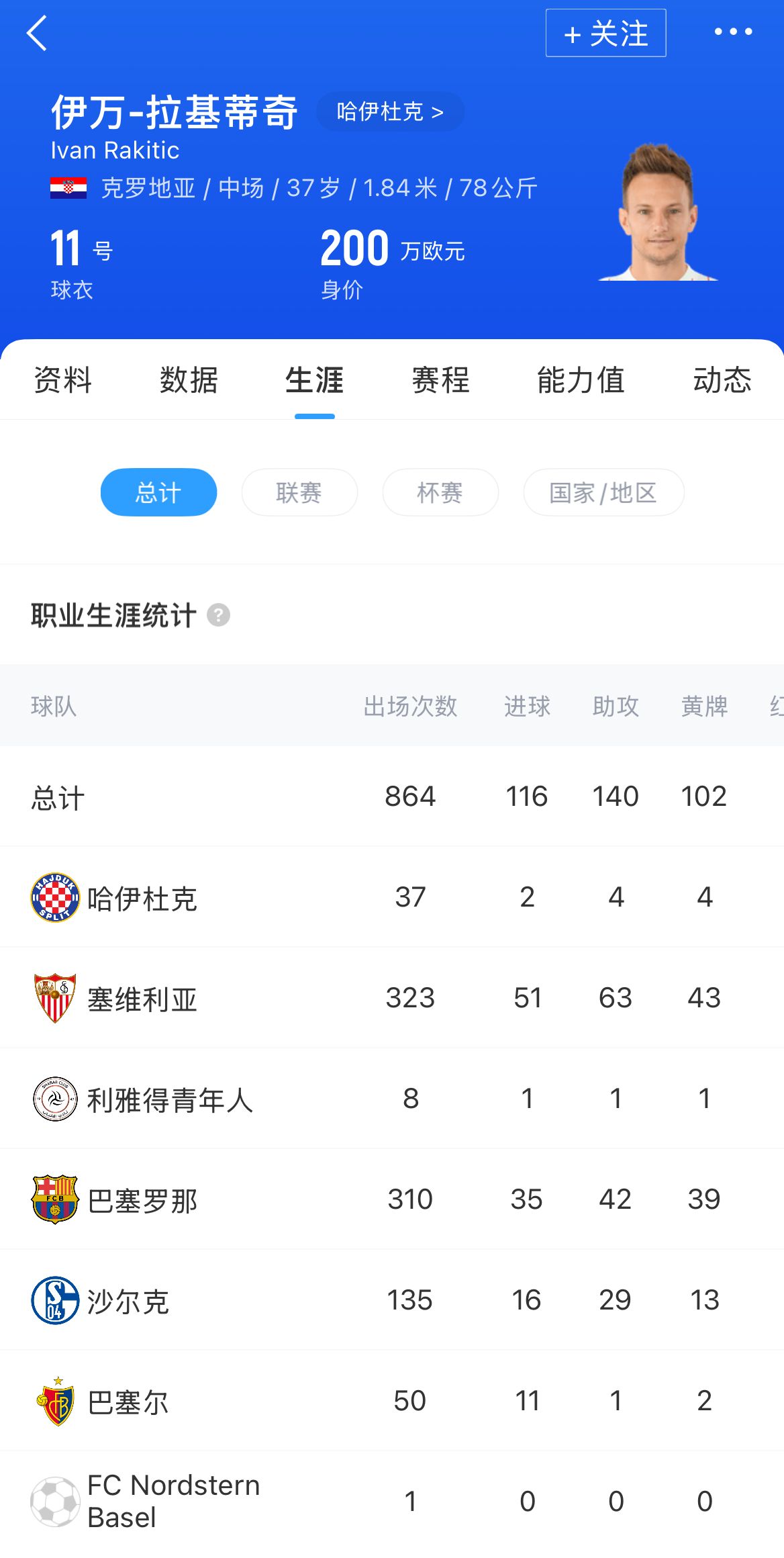 拉基蒂奇现年37岁,职业生涯已近尾声。去年夏天,他放弃沙特的巨额薪水,转会回到克罗地亚加盟哈伊杜克,38场贡献2球5助,他与球队的合同今夏就将到期。