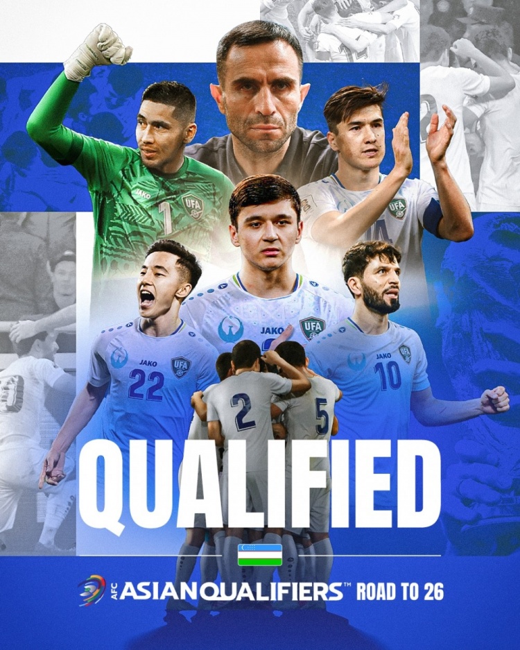 6月8日讯 世预赛A组第9轮乌兹别克斯坦客场0-0战平阿联酋,乌兹别克斯坦9轮比赛打进11球,丢7球拿到18分,历史首次晋级世界杯正赛。