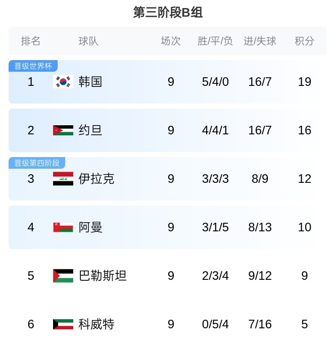 06月07日讯 世预赛亚洲区第三阶段B组,韩国、约旦获得直通世界杯的名额,伊拉克无缘直通。伊拉克足协主席发长文声明致歉。