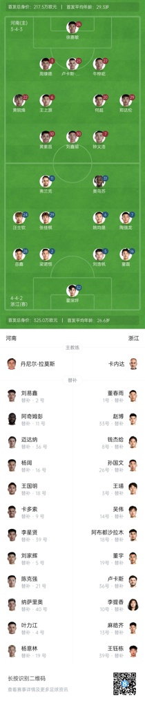 06月22日讯 北京时间今晚19点30,足协杯1/8决赛,河南vs浙江,赛前首发阵容公布。